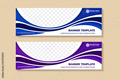 abstract modern template design.  space of photo collage and text. Advertising banner with horizontal layout. white on background. brown and purple on wave element.