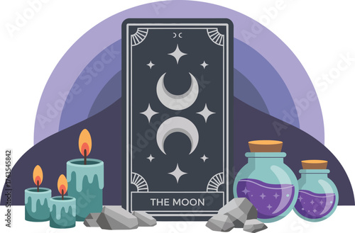 Mystical tarot card sun moon and star. Celestial poster design. Boho vector illustration. Esoteric decorative element. Witchcraft, occult, spiritual design
