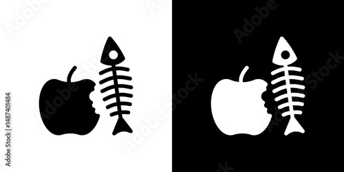 Two Graphic Apple Cores Depicting Consumption Stages and Culinary Waste Minimalism and Environmental Awareness, Fruit Remains