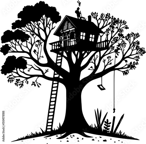 elegant black and white silhouette of a mighty oak tree perfect for nature genealogy or heritage projects