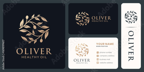 Flower olive oil logo design vector symbol icon illustration template editable, Water drop logo with ornament style elegant and sophisticated in gold color for brand identity business