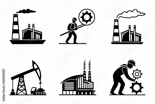 Factory icon set , industry and manufacturing symbol. vector illustration .