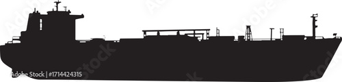 Oil tanker silhouette. This image shows a silhouette of an oil tanker, also known as a petroleum cargo vessel used for transportation and storage. Vector clipart illustration design.