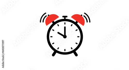 Minimalist red alarm clock icon ringing loudly. Concept for time, schedules, wake-up calls, and important reminders.