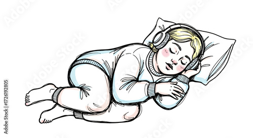 A young man sleeping soundly on a pillow in his bed, a flat vector illustration representing rest, dreams, and tranquility