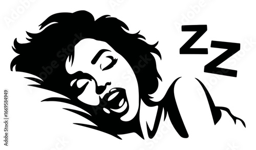 Cartoon of a sleeping person, resting head on pillow, sleeping with Zzz symbol