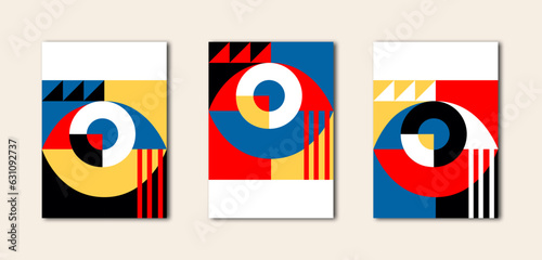 Carteles geométricos estilo bauhaus de colores, impresiones geométricas para pared, portadas, libros, poster, fondo color pastel