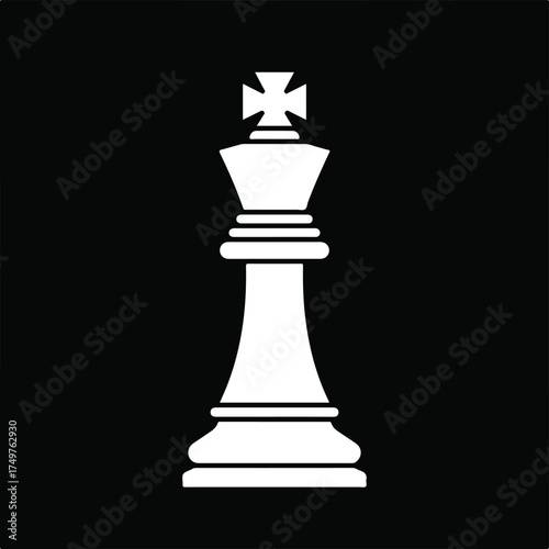 A modern minimal flat geometric chess king vector illustration, precisely crafted with clean lines and sharp angles, stands prominently on a pure white background, embodying strategy.