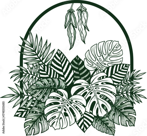 Elegant tropical leaf arrangement creating a natural decoration with fresh botanicals and organic foliage