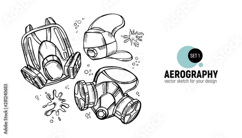 Black ink silhouette set featuring gas masks and respirators for urban art design