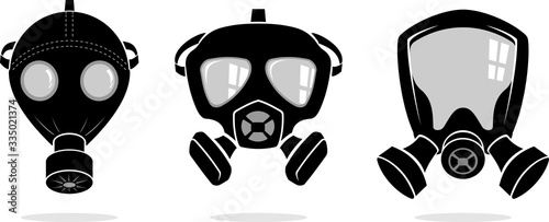 Military and civilian gas masks. Icons of the epidemic. Chemical and bio-defense.
