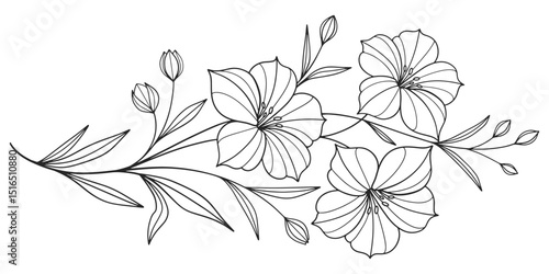 Line art Sketch Floral Botany. flower drawings. Black and white with line art on white backgrounds. Hand Drawn Botanical Illustrations.Vector.