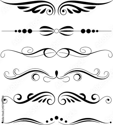 Decorative borders and dividers collection with elegant swirls and ornate designs for various creative projects