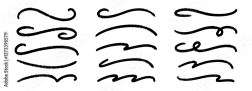 Line flourish swirl vector calligraphy ornament elements. Fancy line flourish text typography accent, filigree modern curve ornament. Curl elegant vintage simple design elements. Vector illustration