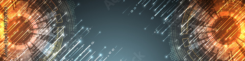 Technology science font, digital cyber alphabet made futurism style, Latin uppercase letters A, B, C, D, E, F, G, H, I, J, K, L, M, N, O, P, Q, R, S, T, U, V, W, X, Y, Z and Arab numerals 0, 1, 2, 3,