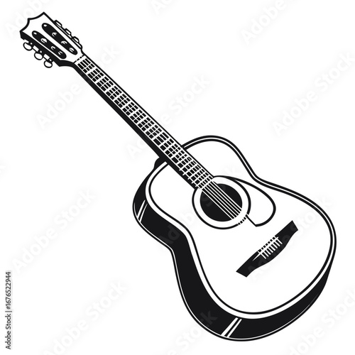 Acoustic Guitar Silhouette Vector Illustration, Solid White Background.