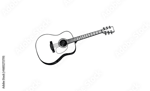 Isolated acoustic guitar illustration on white background. Vector illustration.