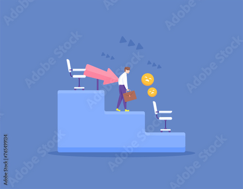 concept from success to failure. towards bankruptcy. decline, loss, demotion. career and business problems. illustration of a businessman walking gloomily towards failure. flat style design