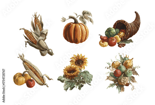 Time for harvest, autumn harvest. Set of vector illustrations of gardener, fields, tractor, vegetables, farm, harvest, nature. Drawings for flyers, promotional materials, posters, cards and other desi