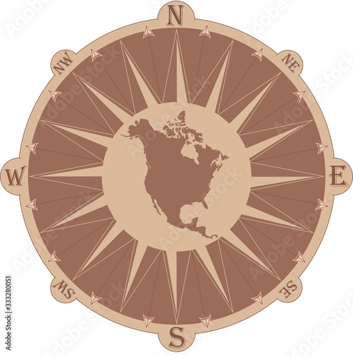 Róża wiatrów, kierunki świata, mapa kompas ikona