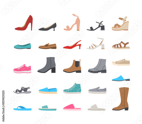 Formal Shoe Icon Collection. Isometric Flat icon set of formal shoes collection: stiletto heel pump, strappy sandal, peep-toe pump