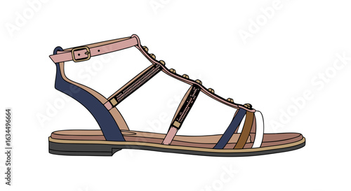 Elegant strappy sandal illustration with delicate embellishments perfect for summer fashion and stylish footwear design