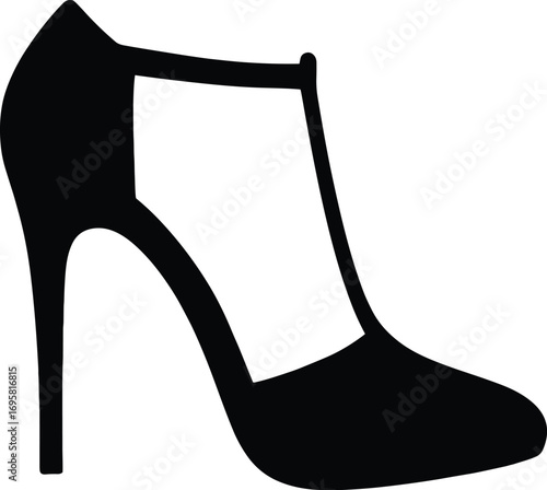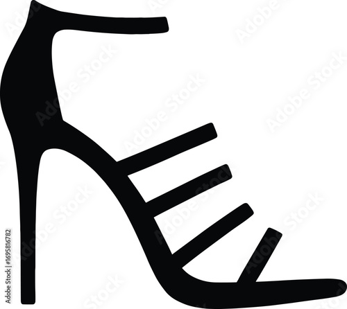 Elegant high-heel shoe silhouette with strappy design on white background