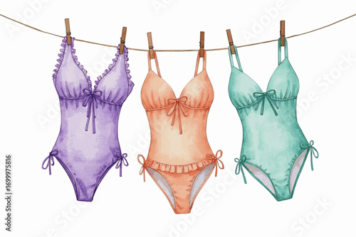 cad drawing flat vector illustration, one-piece swimsuit sketch, strappy bow back, scoop neckline design, fashion template, garment construction