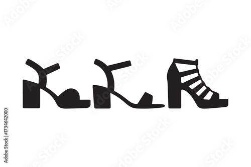 High heel shoe silhouettes, fashion footwear icons, stylish women shoes, elegant stiletto designs, trendy sandals, peep toe boots, strappy heels