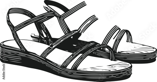 Stylish strappy sandals, a fashionable summer footwear accessory in simple black silhouette
