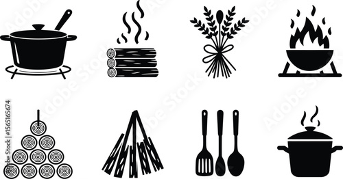 Campfire icon set in bold silhouette style for outdoor and adventure themes
