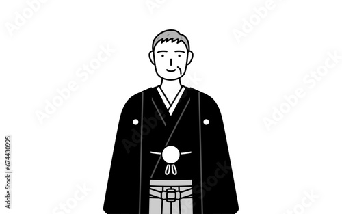 Vector illustration of a businessman who plans his tasks, looks forward with a kind smile. Minimalistic graphics isolated on a white background.eps