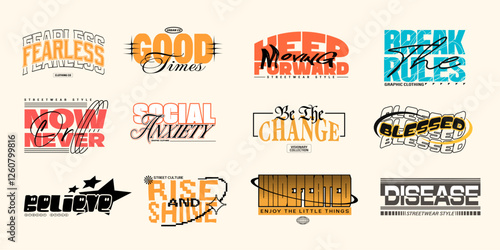 Set streetwear New York logo ideas for a clothing brand. Design vector typography for t-shirt streetwear clothing.