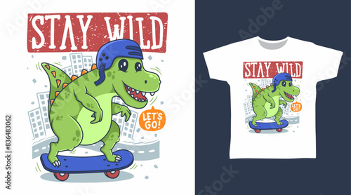 vector cartoon dino illustration for t shirt print