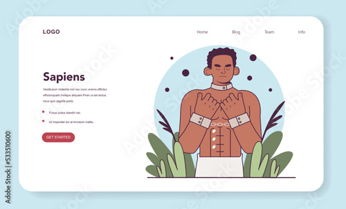 Slavery web banner or landing page. Black African American with a handcuffs