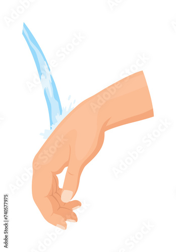 Hand with Wound Streaming Blood Under Cold Tap Water for Bleeding Control Vector Illustration
