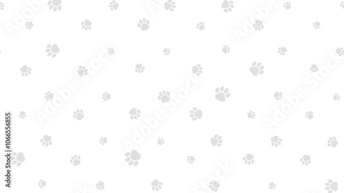 Black paw prints scattered across a white background pattern