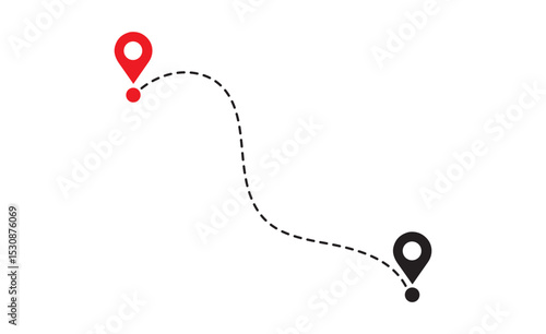 Location Route Path with Dotted Line and Map Pins – Travel Vector Icon