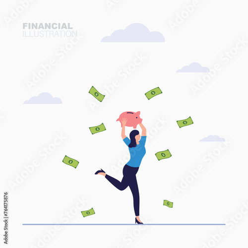 Pay off debt, destroy shackle or anxiety burden, escape and liberation concept. Vector illustration