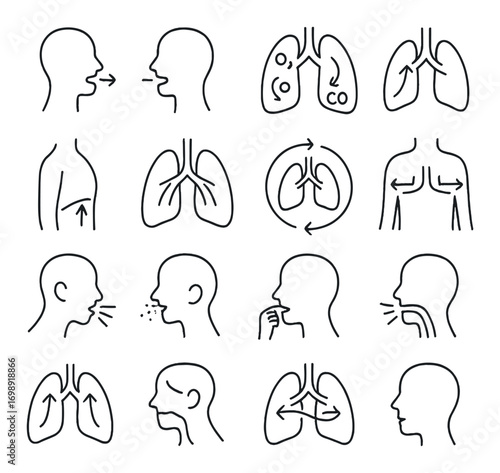 Asthma vector icon set. Line editable medical icons.