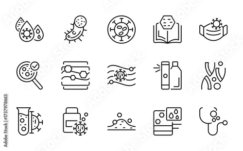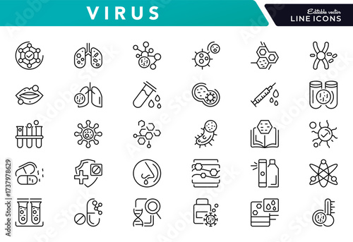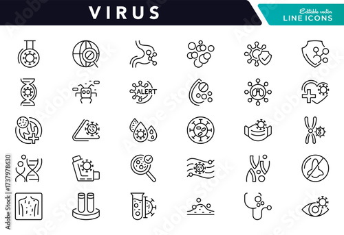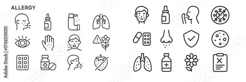 Set of outline icons related to allergy. Linear icon collection. Editable stroke. Vector illustration