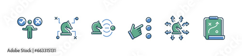 set of business objective action planning success decision icon vector management leadership marketing mission strategy teamwork option choice symbol illustration
