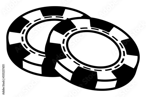 ブラックチップのイラスト。チップはルーレットやポーカーなど、カジノゲームで賭けるときに使うコイン。
