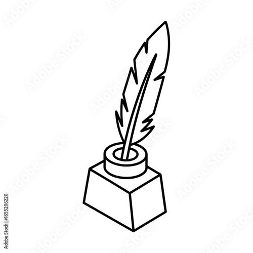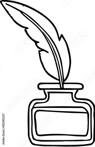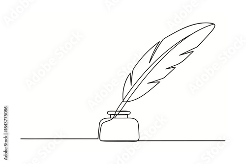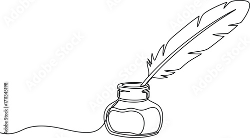 Elegant Quill Pen in Inkwell Line Art Illustration