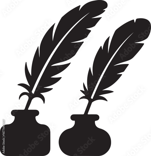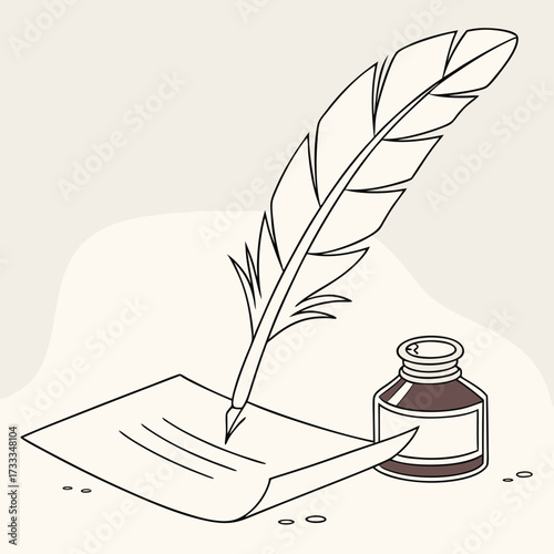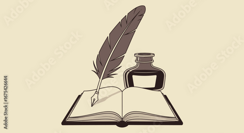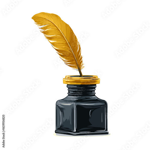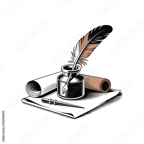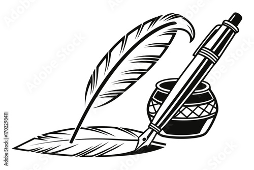 Elegant quill pen and inkwell vector illustration for writers creative projects