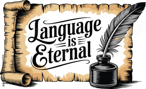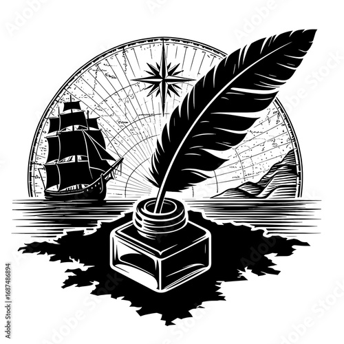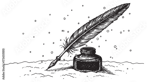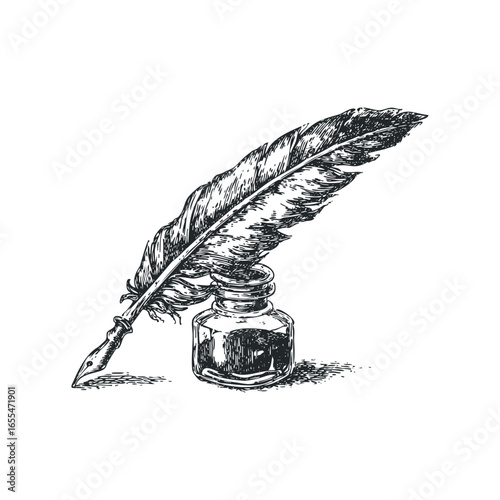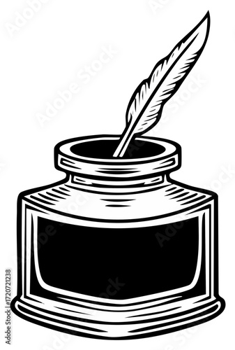 Classic inkwell and quill design vintage art symbolizing writing and creativity with elegant details.