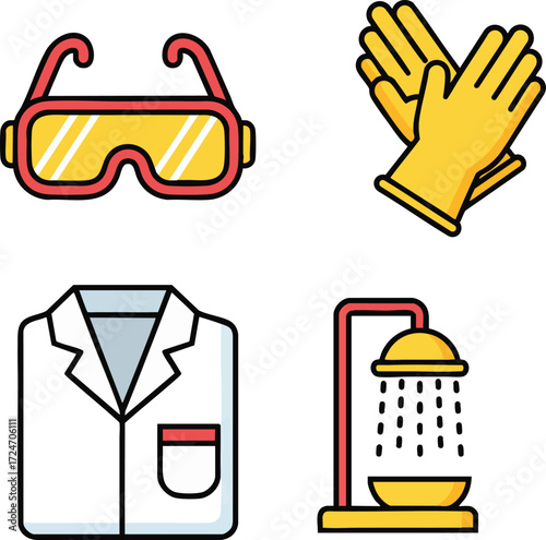 Safety equipment protects researchers in laboratory setting, ensuring health and wellbeing during scientific experiments, promoting a secure and productive research environment.