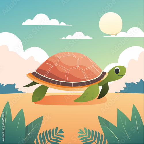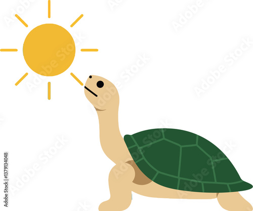 A cheerful turtle basking under a bright sun in a minimal flat design vector art