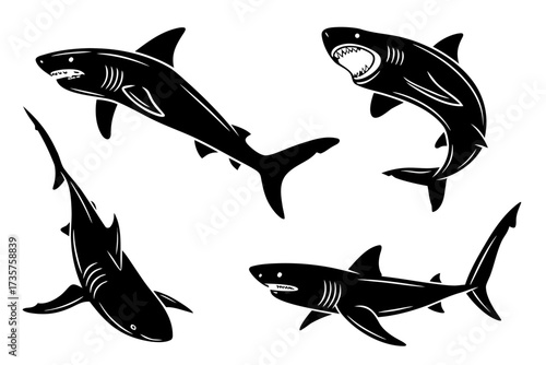 Minimalist basking shark icon set with four color options