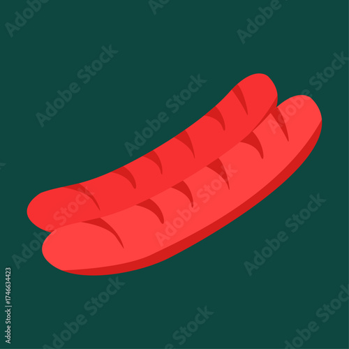 Two Plump Red Sausages on a Dark Teal Background with Subtle Shadowing